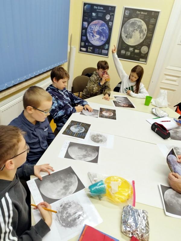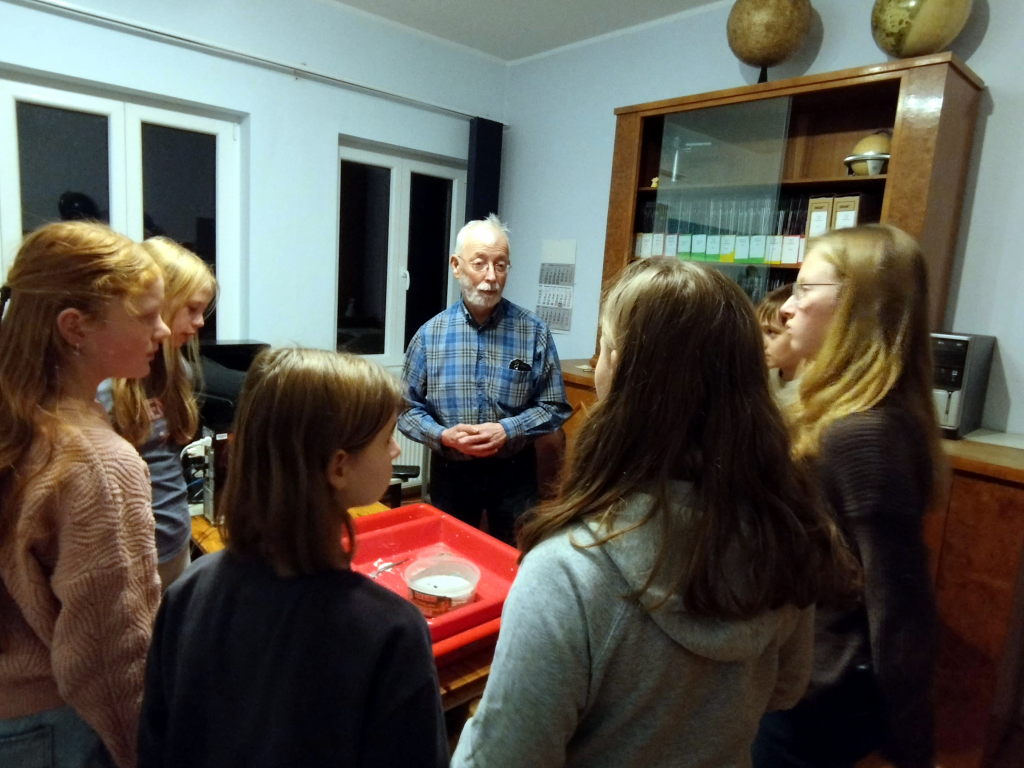 Trotz eines leider überwiegend bewölkten Himmels hatten die Schülerinnen und Schüler Glück: Durch einige Wolkenlücken konnten sie einen eigenen Blick durch das Teleskop werfen und die faszinierenden Kraterlandschaften des Mondes bestaunen!